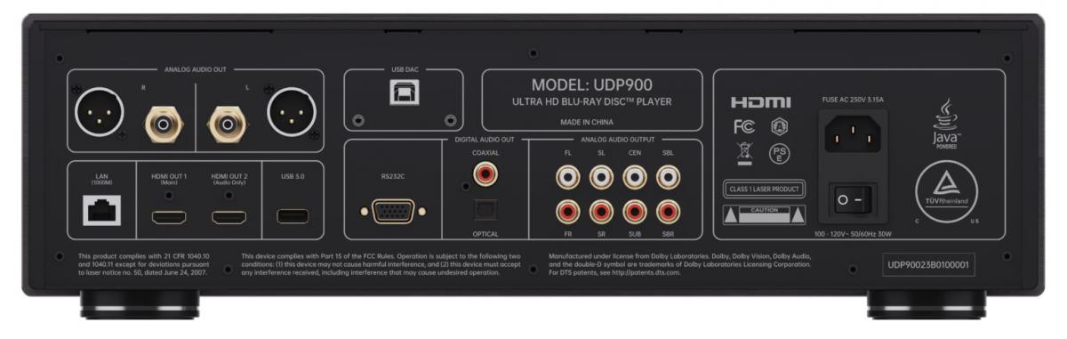 Do odtwarzania dźwięku UDP900 wykorzystuje dwa oscylatory kwarcowe TCXO o bardzo niskim poziomie szumów 100 MHz z kompensacją temperatury, zapewniające dokładniejszą dokładność zegara systemowego. Do dwukanałowego i wielokanałowego dekodowania cyfrowo-analogowego wykorzystywane są dwa niezależne procesory DAC, co zapewnia audiofilską jakość dźwięku. Dekodowanie cyfrowo-analogowe dla 2 kanałowego dźwięku jest za pomocą przetwornika Sabre ESS9038PRO, posiada wyjście 2-kanałowych zbalansowane XLR i niezbalansowanych RCA. Natomiast za dekodowanie cyfrowo-analogowych dla wyjścia 7.1 RCA odpowiedzialny jest przetwornika Sabre ESS9028PRO. UDP900 jest wyposażony w pozłacane, zbalansowane terminale stereo XLR i pozłacane, niezbalansowane wyjścia stereo RCA. Dostępna jest funkcja trybu czystego dźwięku, która zapewnia miłośnikom dźwięku bezkompromisową jakość dźwięku.