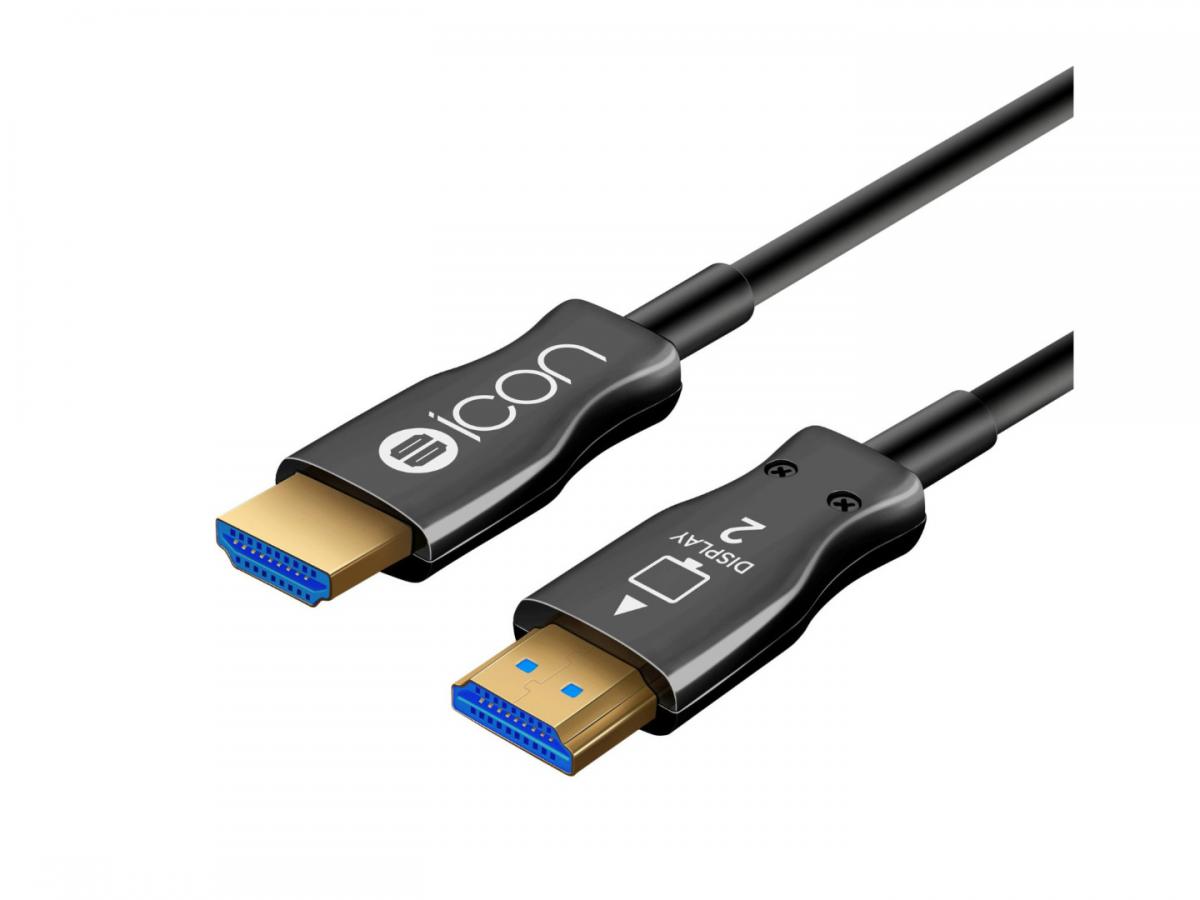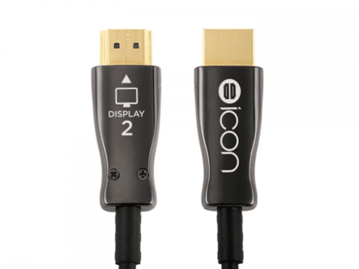 Linia kabli icon dostępna jest od 0,5 mb do 150 mb. Kable nie wymagają dodatkowego zasilania ze względu na zainstalowane w złączach wysokiej klasy przetworniki sygnału HDMI na wiązkę światłowodową. Kable są jednokierunkowe, dlatego wtyczki posiadają identyfikatory w postaci rysunków określających źródło sygnału wideo oraz odbiornik (TV, monitor, projektor).