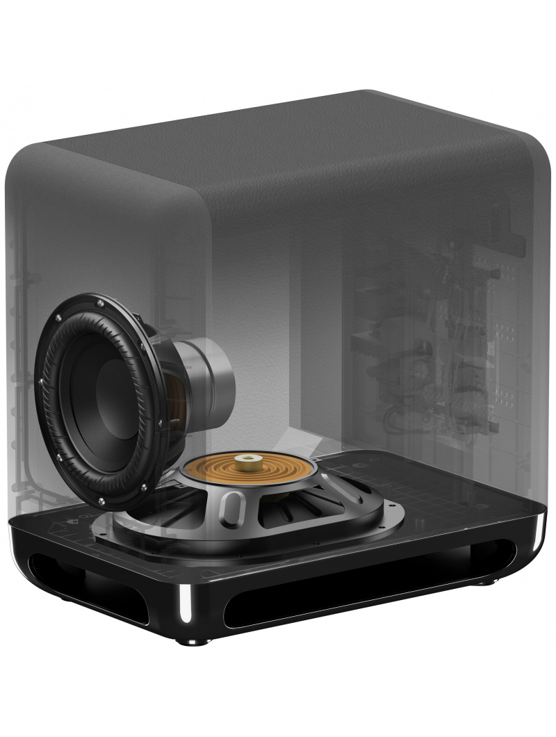 Całość tworzy bardziej kompletne kino domowe z wyraźnym basem i przestrzennym dźwiękiem, który znacznie poprawia immersję w porównaniu z samym soundbarem.